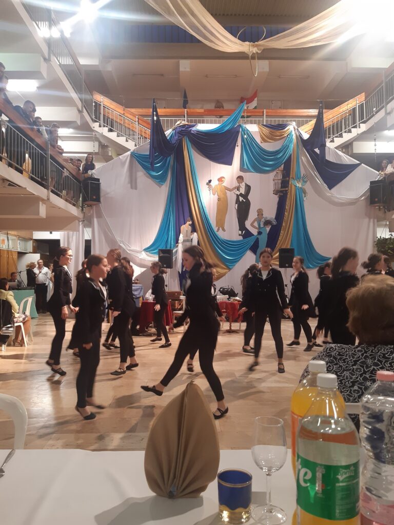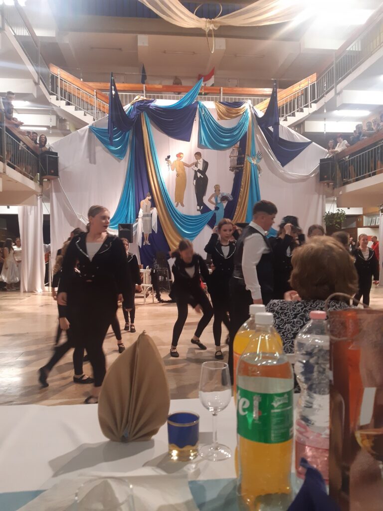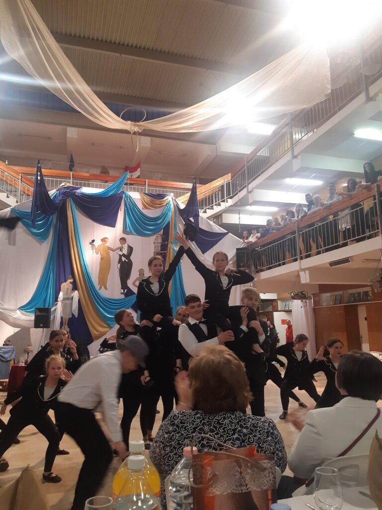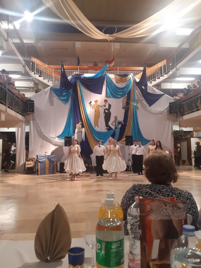 A 7. évfolyam palotás tánca nyitotta meg az estet, majd a Bársony Összművészeti Egyesület tánccsoport növendékei az 1920-as évek hangulatához illő táncokkal szórakoztatták a bálozó közönséget. A műsorszámok között a 7. a osztály tanulói A nagy Gatsby című filmből adtak elő részleteket. Köszönet illeti a színvonalas produkciókért a tánccsoportot vezető tanárnőket: Dulibán-Grajz Andreát és Antalffy Szabolcsnét, valamint Tóth Zsuzsanna tanárnőt, aki a jeleneteket tanította be tanulóinknak. A műsor utolsó száma a keringő volt, amelyet Vancza Andrásné tanárnőnek köszönhetünk. Mindez egy elegáns, art déco stílusában, igazi Gatsby hangulatot idéző díszletben jelent meg, amit Fenyvesiné Csák Zsuzsanna és Végh Renáta tanárnők álmodtak és valósított meg. Bálunk főszervezői Zsigmondné Palicz Mónika és Peiker Katalin tanárnők voltak. Minden közreműködő kollégának hálás köszönet jár.