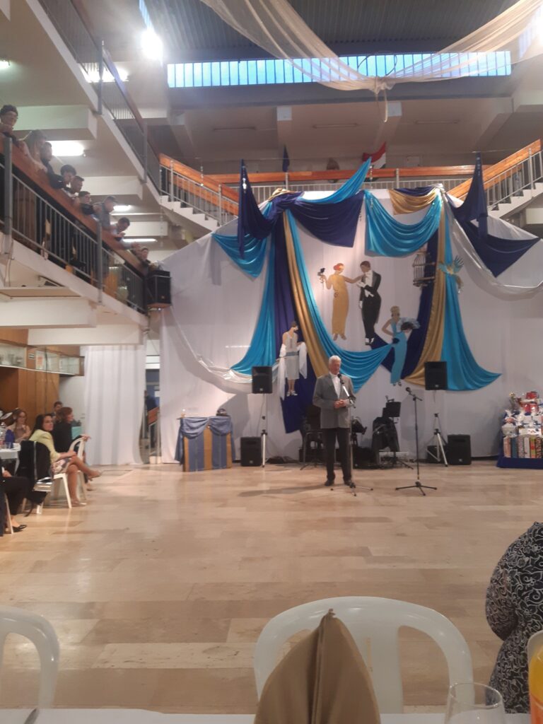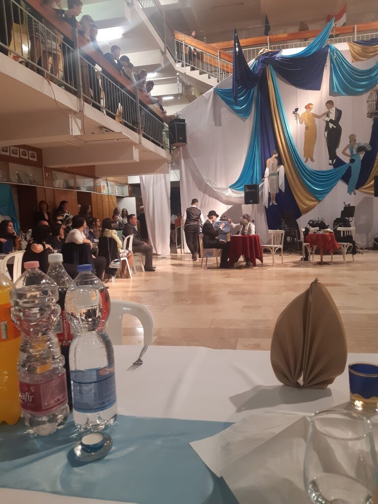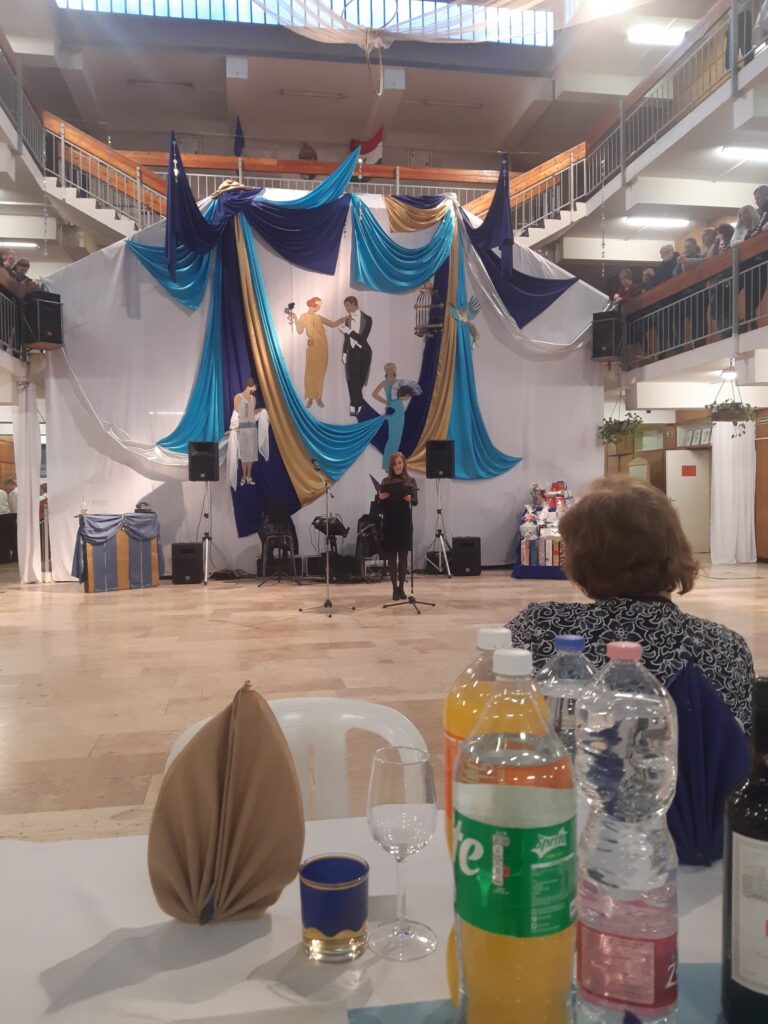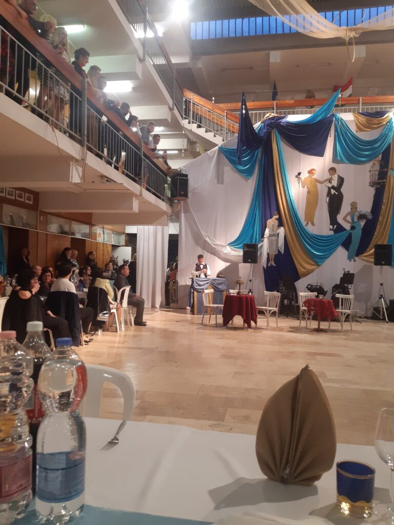Az idei jótékonysági bálunk mottója: „A múlt örökre elmúlt, a múlt mindig él.” Az idézet Scott Fitzgerald amerikai író 1925-ben megjelent A nagy Gatsby című regényéből származik. Mind a díszlet, mind a műsor ebben a stílusban készült.